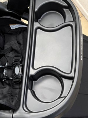 - Stroller 2-panel UV canopy, parent tray with phone positioner and 2 cup holders, child's tray with 2 cup holders, storage basket.