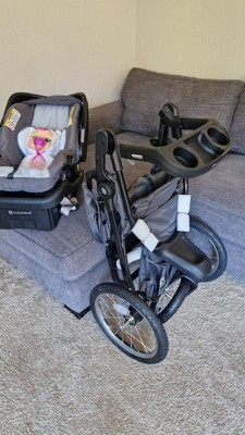 The Baby Trend Journey Jogger Travel System makes every outing a fun activity. The parent tray, with two cup holders and a center console, offers a large space to keep your essentials. The child tray features cup holders and a snack area, so your little one can enjoy some treats while exploring the world.