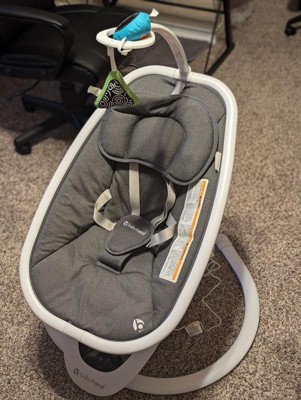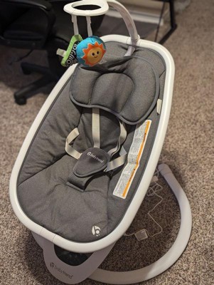 [This review was collected as part of a promotion.] My baby likes this more than the bouncing chair we have been using for her. It has a few song options and different movements to soothe baby. The remote control is also an extra nice added touch. The cord is not hard wired and is easy to trip on and break (my 3 year old did just this), the toy arm is very tall and impossible for baby to reach the toys, so I put longer toys on there.