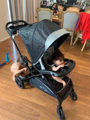 - Stroller Seat Adjustments: 5 modes of use to accommodate your growing family. Multiple options for two children from infant to youth, including bench seat and standing platform option. Comfort Cabin includes removable extra-long canopy with UPF 50+ protection; Deluxe fabrics and padding provide premium comfort