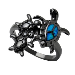 Baby Turtles Fire Opal Statement Ring Black Plated Womens Ginger Lyne Collection