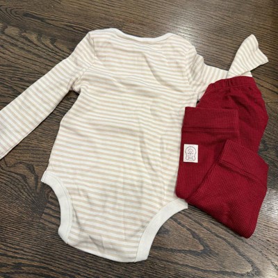 Keep your bundle of joy in cozy comfort with this 2-Piece Winnie the Pooh Bodysuit & Pants Set from Cloud Island™. This outfit set includes a long-sleeve bodysuit featuring Winnie the Pooh on the front plus pull-on waffle pants for a cute, coordinated look. The pieces are made from cotton and cotton-blend fabric for all-day comfy wear, and the bodysuit has lap shoulders and crotch snaps for easy dressing and diaper changes.