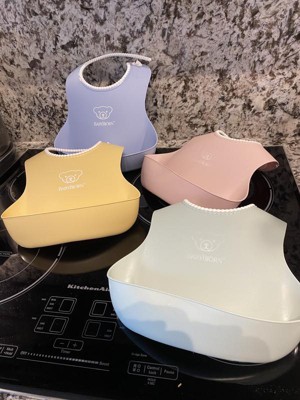The BabyBjorn bibs are highly praised for their durability, ease of cleaning, and effective food-catching design. They are adjustable and suitable for various ages, making them a versatile choice for parents. However, some guests find them too stiff and large for smaller infants. The bibs are also noted for their attractive colors and quality materials.