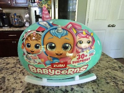 My little girl enjoyed every moment of opening her babycorn. The outer egg turns into a baby bed for the baby doll. Along with the baby doll she got tons of extra surprises included such as the baby bottle, Pacifier, a little stuffed animal and so much more.