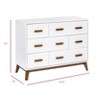 The Scoot 6-Drawer Dresser is the definition of mid-century modern style. The perfect accompaniment to your Scoot 3-in-1 Crib with matching tapered feet and two-toned or solid color detailing. With six smooth-glide drawers, this versatile unit provides a range of practical storage possibilities to suit all of your nursery needs