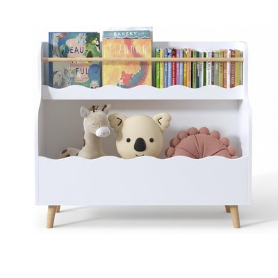 BABYYER Wavy Corner Shelf, 5-Tier Wooden Bookcase, Multifunctional Display Storage Rack with Adjusted Shelves for Living Room and Office (White)