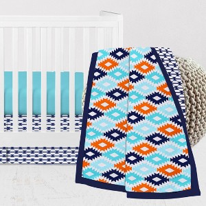 Bacati - Aztec Print Liam Aqua Orange Navy 3 pc Crib Bedding Set
