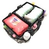 Add organization to any area of your home with the portable Nursery/Toddler Storage Caddy by Bacati. Perfect for dressers and changing stations, this lightly padded caddy has 8 outer pockets and a removable "T" separator for maximum versatility. The soft cotton percale fabric with stiffner inside keeps the shape intact, lining and handles feature a padded with polyfilled and cordinating trim. Keep diapers, wipes and other necessities tidy while traveling from room to room. Caddy also functions as an organizer for crafts, picnics, pet supplies, etc. Measures 12.5 in x 6.25 in x 8.5 in.
