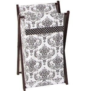 Bacati - Classic Damask white/black Laundry Hamper with Wooden Frame