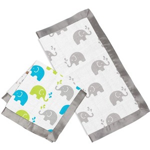 Bacati - Elephants Aqua/Lime/Gray Muslin 2 pc Security Blankets