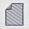 - This Bacati 3-piece Crib Set Includes Reversible Comforter/Playmat (33 x 43 inches), Crib fitted sheet (52 x 28 x 6 inches) and Crib Skirt/Dust ruffle (13 inch drop) in fun, colorful and signature prints in 100 percent cotton 200 Thread Count percale fabrics. Designed in United States by Experienced Designers. Many coordinating items available to purchase separately in this Bacati Elephants Blue/Navy/Gray Bedding Collection.