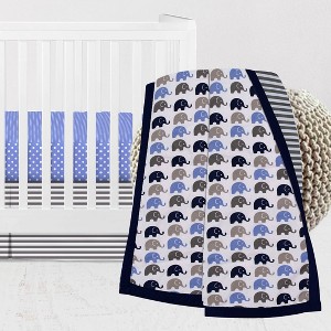 Bacati - Elephants Blue/Navy/Gray 3 pc Crib Bedding Set