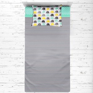 Bacati - Elephants Mint Yellow Gray 3 pc Toddler Bed Sheet Set
