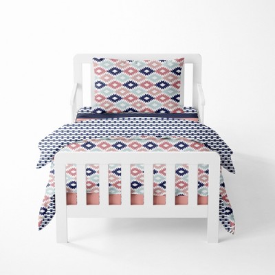 This Bacati 6-piece Crib Set Includes Reversible Comforter/Playmat (33 x 43 inches), Crib fitted sheet (52 x 28 x 6 inches), Crib Skirt/Dust ruffle (13 inch drop) Diaper Stacker (holds more than 30 newborn diapers), Reversible Long Crib Rail Guard Cover (52 x 12 inches) and Window Valance (15 h x 56 w inches with 1.75 inch Rod Pocket) in fun, colorful and signature prints in 100 percent cotton 200 Thread Count percale fabrics. Designed in United States by Experienced Designers. Many coordinating items available to purchase separately in this Bacati Emma Coral Mint Navy Bedding Collection.