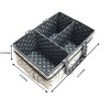 - Removable T-separator buttons in at top and bottom of each point. Separator creates three interior sections. Two side by side sections which measure 7" long by 4.25" wide and hold 10 newborn diapers comfortably in each and one long section which measures 8.5" long by 5" wide.