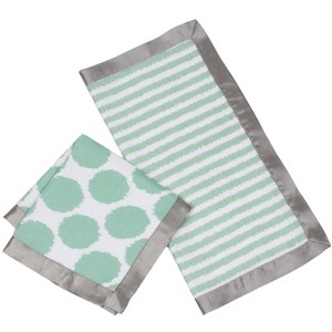 Bacati - Ikat Mint/Gray Dots/Stripes Muslin 2 pc Security Blankets