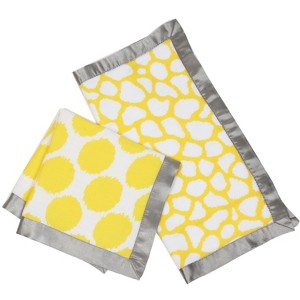 Bacati - Ikat Yellow/Gray Dots/Giraffe Muslin 2 pc Security Blankets