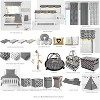 - This Bacati 3-piece Crib Set Includes Reversible Comforter/Playmat (33 x 43 inches), Crib fitted sheet (52 x 28 x 6 inches) and Crib Skirt/Dust ruffle (13 inch drop) in fun, colorful and signature prints in 100 percent cotton 200 Thread Count percale fabrics. Designed in United States by Experienced Designers. Many coordinating items available to purchase separately in this Bacati Love Black Gold Bedding Collection.