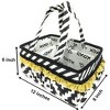 Add organization to any area of your home with the portable Nursery/Toddler Storage Caddy by Bacati. Perfect for dressers and changing stations, this lightly padded caddy has 8 outer pockets and a removable "T" separator for maximum versatility. The soft cotton percale fabric with stiffner inside keeps the shape intact, lining and handles feature a padded with polyfilled and cordinating trim. Keep diapers, wipes and other necessities tidy while traveling from room to room. Caddy also functions as an organizer for crafts, picnics, pet supplies, etc. Measures 12.5 in x 6.25 in x 8.5 in.