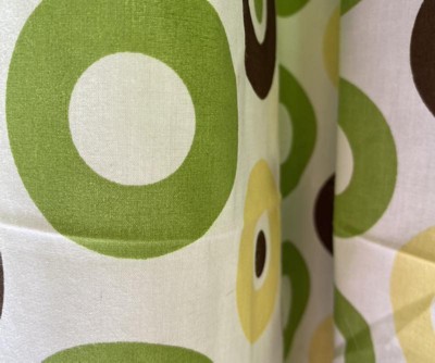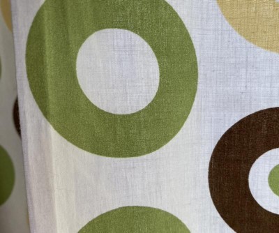- Bacati - Mod Dots Green/Yellow/Beige/Brown Single Curtain Panel is made from 100% cotton percale fabric. It has classic dots print all over. Dimensions: 42 x 84