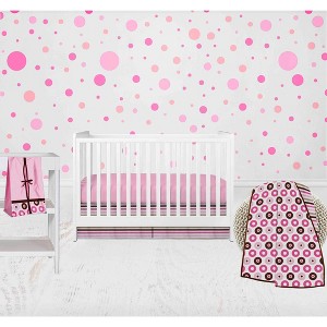Bacati - Mod Dots Stripes Pink Fuschia Beige Chocolate 4 pc Crib Bedding Set with Diaper Stacker