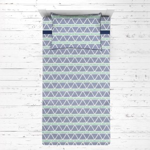 Bacati - Noah Large Triangles Mint Navy Muslin 3 pc Toddler Bed Sheet Set