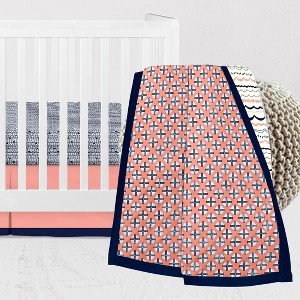 Bacati - Olivia Coral Navy 3 pc Crib Bedding Set