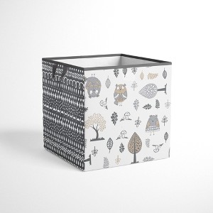 Bacati - Owls Gray/Beige Neutral Cotton Storage Box Small