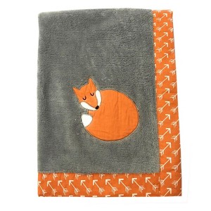 - Bacati - Playful Fox Grey Embroidered Blanket