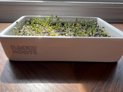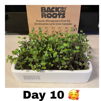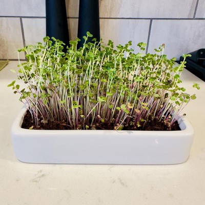 The Back to the Roots Organic Microgreens Grow Kit provides a fun and easy way to grow the vegetables and herbs at home! Tiny but mighty, microgreens are one of nature's best kept secrets. These baby seedlings are packed with flavor and nutrition (up to 40 times the vitamins and minerals of their mature plants!). This home gardening kit has everything you'll need to grow microgreens at home, including a Mighty Mix Superfoods seed packet, reusable ceramic planter, soil disk, germination cover, and grow guide. Our Mighty Mix Superfoods blend contains broccoli seeds, kale seeds, kohlrabi seeds, and cabbage seeds. One pinch of these vegetable plants is all you need to liven up any recipe, including sandwiches, salads, and smoothies. Plant your seeds, water daily, and harvest in just seven days. The Back to the Roots Mighty Mix Superfoods Microgreens Growing Kit is a great addition to your at-home gardening supplies!