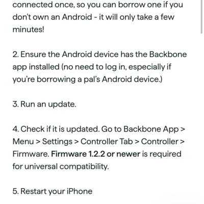 Only reason I’m giving this bad rating is because target sold me a returned product with items missing. It was not brand new sealed. Other than that the backbone works exactly how it’s supposed to. But target needs to not put used electronics on the sales floor to be purchased as new.