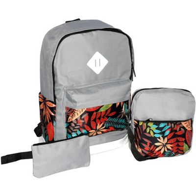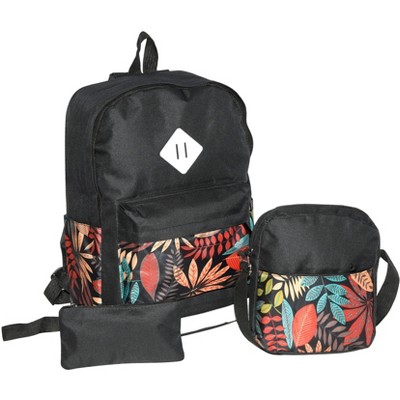 This 3pc NICCI backpack set with floral print design features a backpack, shoulder bag and zippered pouch. Backpack has a zippered main compartment with a front zipper pocket for better organization and to store smaller accessories. Main compartment features a laptop pocket and USB port. Comfortable backpack straps makes this bag perfect for a traveler or busy student.