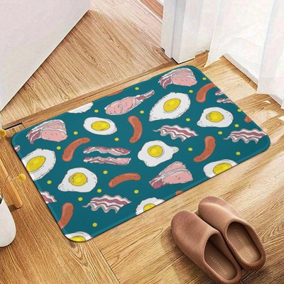 Bacon Eggs Sausages Breakfast Food Bathroom Rugs Winter Bath Mat Absorbent Non Slip Bathroom Mat Christmas Soft Floor Carpet 16x20 Inches