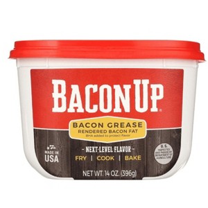Bacon Up is 100% authentic bacon grease, from high-quality bacon rendered in John Gordon's traditional smokehouse process. Bacon Up plastic tub is shelf stable and conveniently packaged - so it's ready whenever you're ready to fry, cook and bake next-level flavor into all your favorites. Bacon Up is excellent for fried turkey, potatoes, chicken, eggs, biscuits, muffins and other baked goods, pan - or deep-fried fish the flavor possibilities are endless. And, of course, bacon up contains no gluten, no dairy, no carbs, no msg and no peanuts. Approx. 30 tablespoons of 100% authentic bacon grease: shelf-stable and triple-filtered for purity. Convenient way to enhance the flavor of your favorite recipes EVERYDAY without the mess, time, or expense of frying bacon. Use it to replace the shortening, butter or oil any time you fry, cook or bake. Non-GMO and NOT hydrogenated Dairy-free, gluten-free, peanut-free, soy-free 14oz plastic tub.