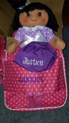 Badger Basket's Doll Travel Backpack is a stylish, fun, and hands-free way to pack your special doll and her accessories, zip, and go! Two pockets and ample room inside to pack up for a sleepover. Heavy duty resin zipper and adjustable straps for you and your doll. For children ages three and up and dolls up to 18 inches. Made with fabric. Spot clean as needed. Overall body of the backpack measures 10.75 inches L x 4 inches W x 13.5 inches H. Fully assembled.