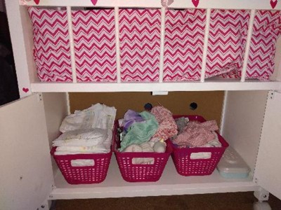 - Spacious storage cabinet keeps doll clothes and accessories neatly organized