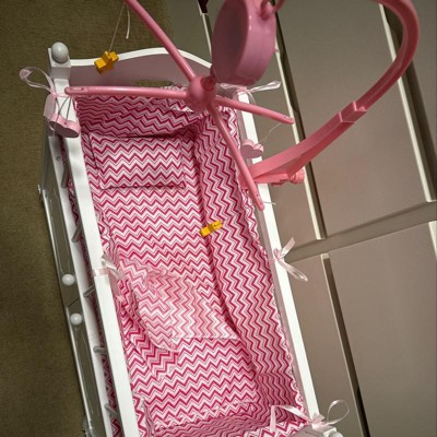 Badger Basket Cabinet Doll Crib with Chevron Bedding and Free Personalization Kit - White/Pink