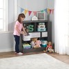 - A versatile unit with shelf, basket, and bin storage for toys, books, games, crafts, and more
