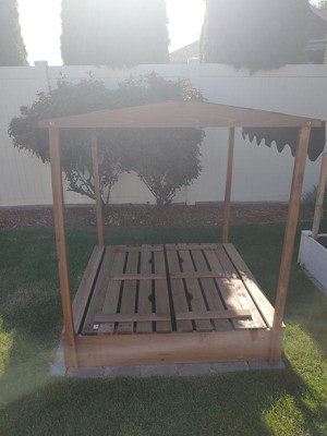 Badger Basket Covered Convertible Cedar Sandbox with Canopy and Two Bench Seats