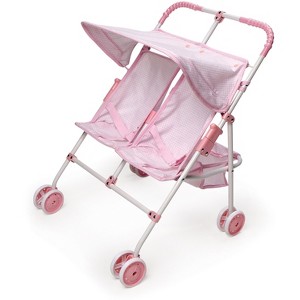 Badger Basket Double Doll Side-by-Side Umbrella Stroller - Pink & White Gingham