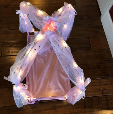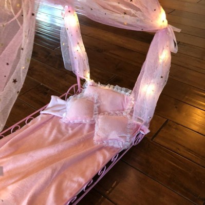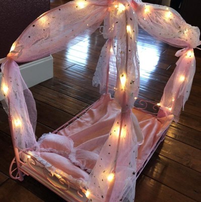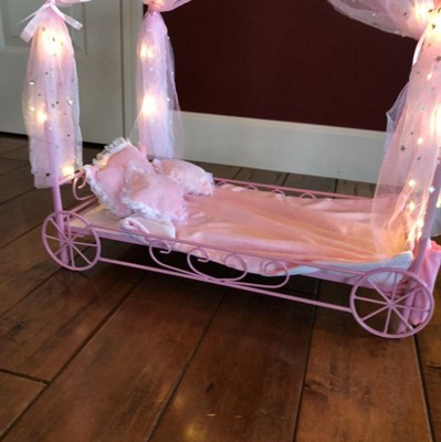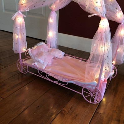 Badger Basket Royal Carriage Metal Doll Bed with Canopy Bedding and LED Lights - Pink/White/Stars: Doll Furniture for 16 to 18 Inch Toys