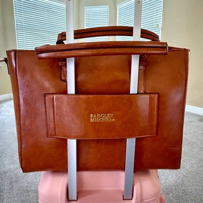 [This review was collected as part of a promotion.] This Badgley Mishka Julia Rustic vegan leather weekender tote is simply stunning with its rustic vegan leather finish. The size is perfect for a quick getaway, offering ample space and pockets for all essentials. The design exudes a classic elegance, making it a stylish accessory. It comes with a strap to attach to make it easy to carry on shoulder as well. Furthermore, the quality of the materials suggests durability for travel, and it will likely last you a while. I highly recommend this bag!
