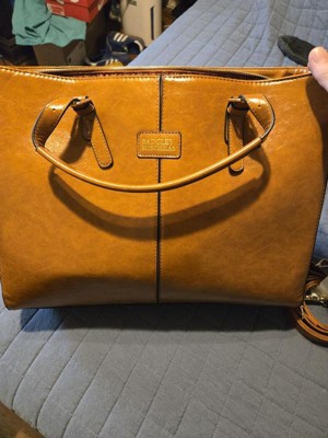 [This review was collected as part of a promotion.] The bag is definitely spacious and would be great for travel or to and from the office. With pockets on the inside. However, the faux leather material feels cheap. I would not purchase this bag if I saw it in store. Would have liked to see it in brown but the material really throws it for me especially living In a hot climate I don’t see this bag lasting very long. Which for a consumer they would need to replace this bag pretty quickly especially if used daily for the office.