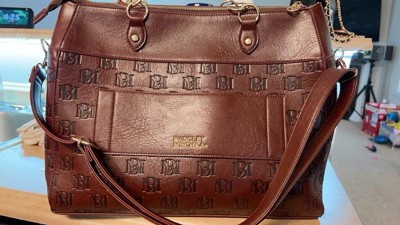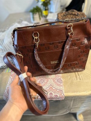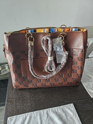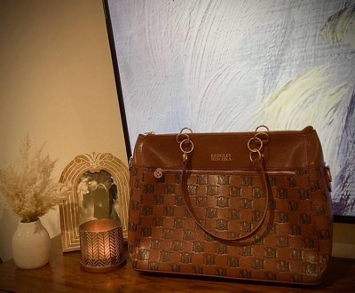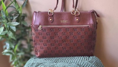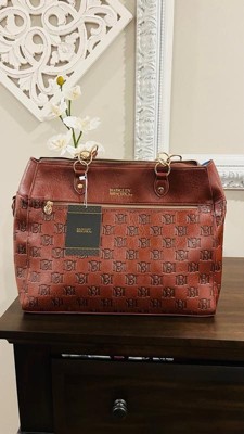 "The Madalyn vegan leather weekender unites timeless design and functionality, brightened by an elegant BM embossed pattern and metal hardware.