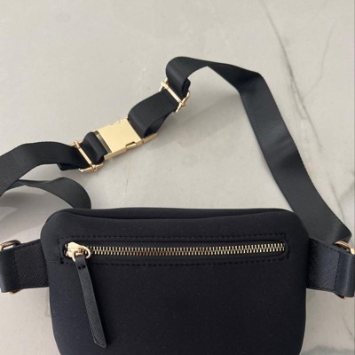 - "Soft belt bag made with vegan Saffiano leather and neoprene.