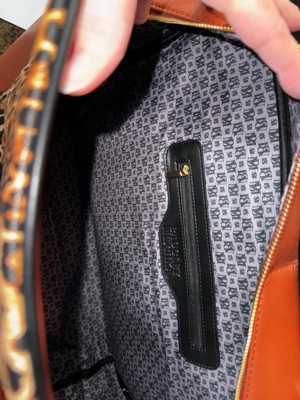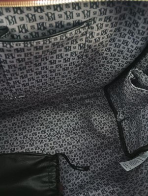 - Lined interior with BM monogram and interior organizational pockets.