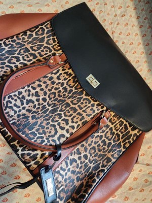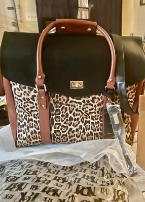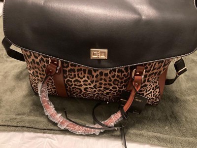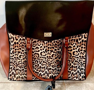 Badgley Mischka Leopard vegan leather travel bag.