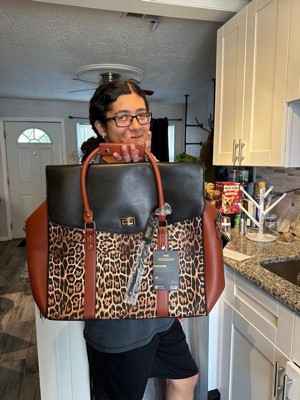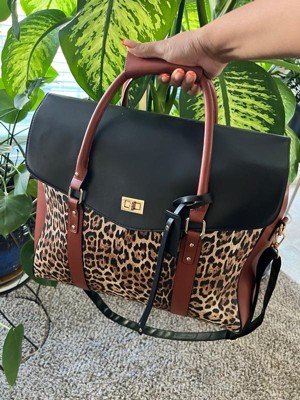 [This review was collected as part of a promotion.] The BADGLEY MISCHKA Leopard Vegan Leather Tote Weekender Travel Bag is large and can carry many items. The leopard print will make you and others around you definitely know that you're on the prowl right now.