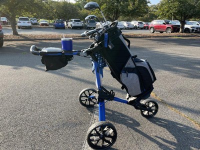This thing is awesome. It's like a Transformer. Super simple to use, very sturdy, and handy storage for water bottles and phone/keys/scorecard etc.