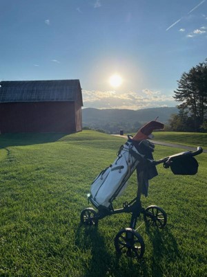I love my custom Nitron in royal blue! It’s perfect for walking rounds. I especially enjoy how easy it is to push versus my old workhorse Sun Mountain Microcart which had seen better days. I also love the auto-open feature and Top Loc. Three items I wish Bag Boy would update include: 1) a larger area for the scorecard; 2) a locking cord included in the under handle bag to cinch it shut for travel; and 3) make the carry/storage bag out of Cordura or other more substantial material.